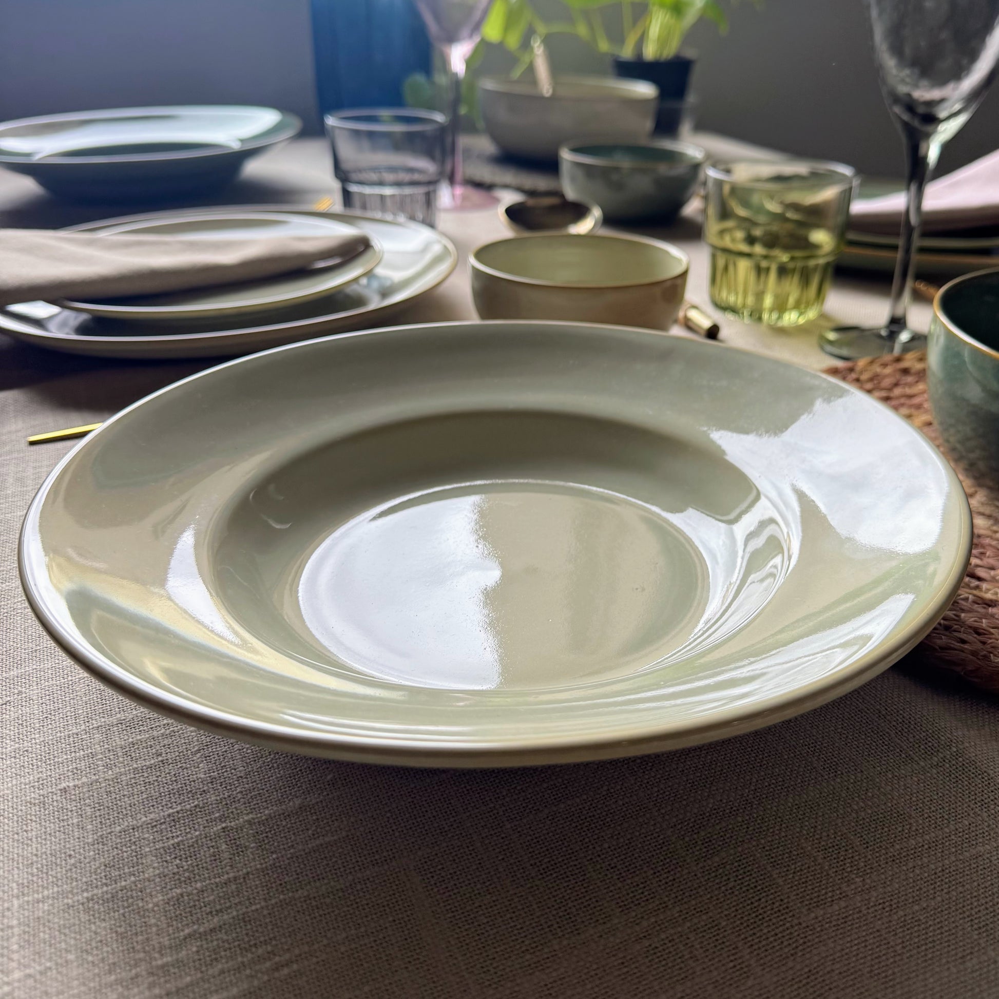Elegant pasta plates, accented on the borders for a touch of elegance.