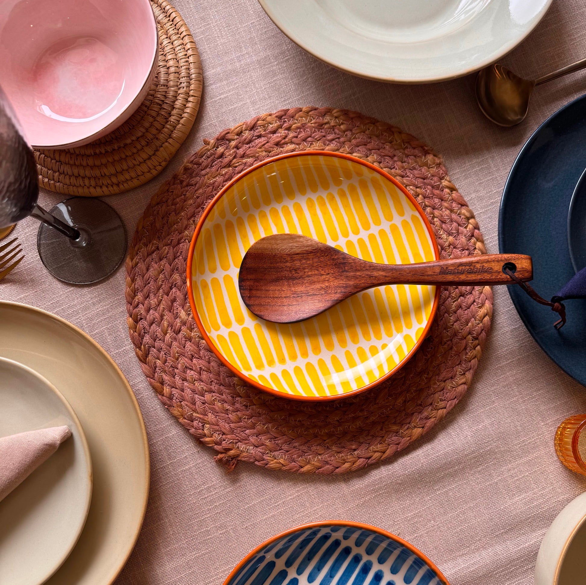 This Atelier collection of bold coloured hand-painted plates are perfect for salads, starters, or desserts. Their artisanal finish and imperfections of the hand add the effortless elegance to any table setting.